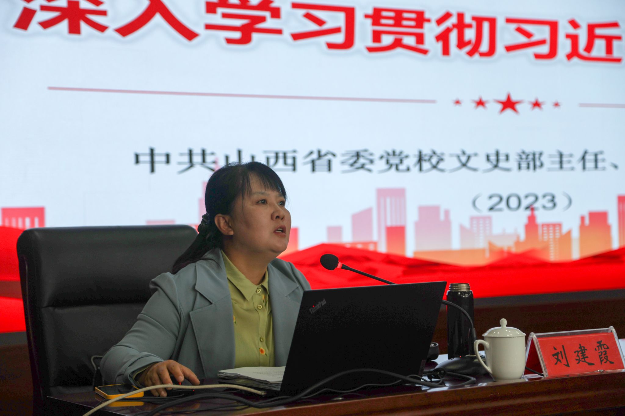刘建霞从习近平文化思想的核心内容和重大意义、我们应建设什么样的文化、怎样建设我们的文化等几个方面对“学习贯彻习近平文化思想”这一主题进行了深刻阐释,对中国特色社会主义文化建设新理念、新观点、新要求进行了深入浅出的分析,在坚定文化自信的基础上,梳理、分析、解读了新时代文化建设的思路。报告主题鲜明、视野开拓、分析透彻,对于进一步准确理解和全面把握习近平文化思想,具有很强的针对性和指导性。