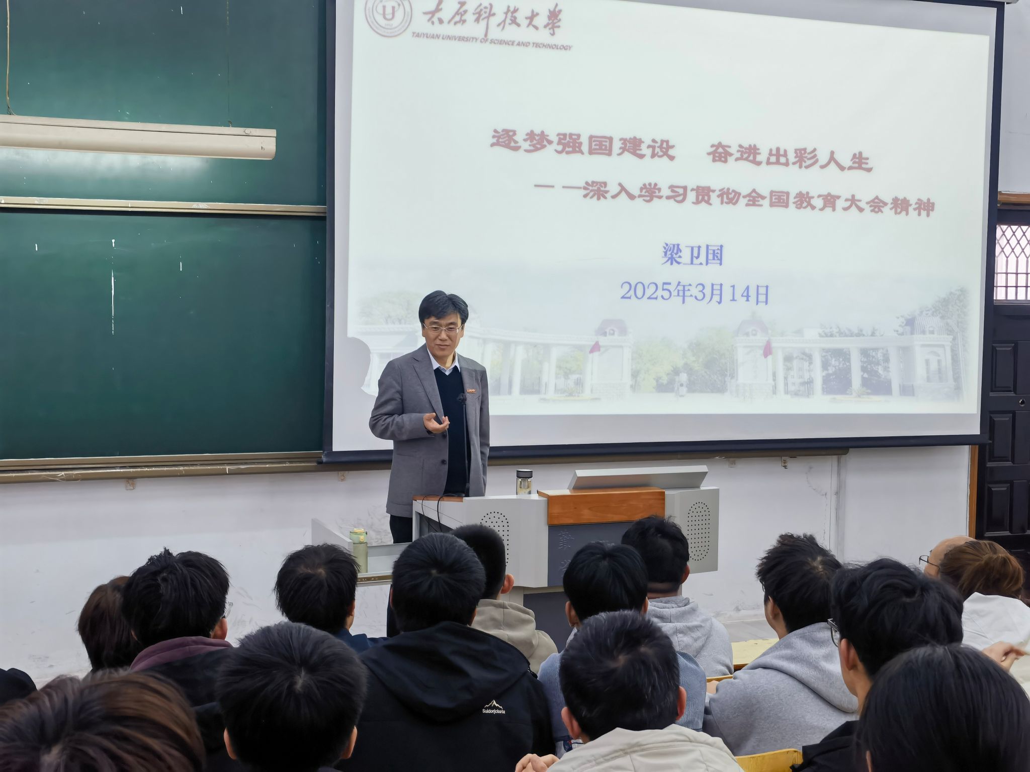 3月14日下午,best365官网南校区的HK3-5阶梯教室气氛热烈、座无虚席,校党委副书记、校长梁卫国为同学们讲授了一堂生动的思政课。梁卫国以“逐梦强国建设 奋进出彩人生”为主题,从教育、科技、人才三者之间的关系出发,为同学们详细解读了全国教育大会精神和教育强国建设规划纲要精神,阐释了教育的“三大属性”、教育强国的“六大特质”以及建设教育强国需要处理好的五大关系、推进教育强国建设的五大任务,引导同学们深入理解“为什...