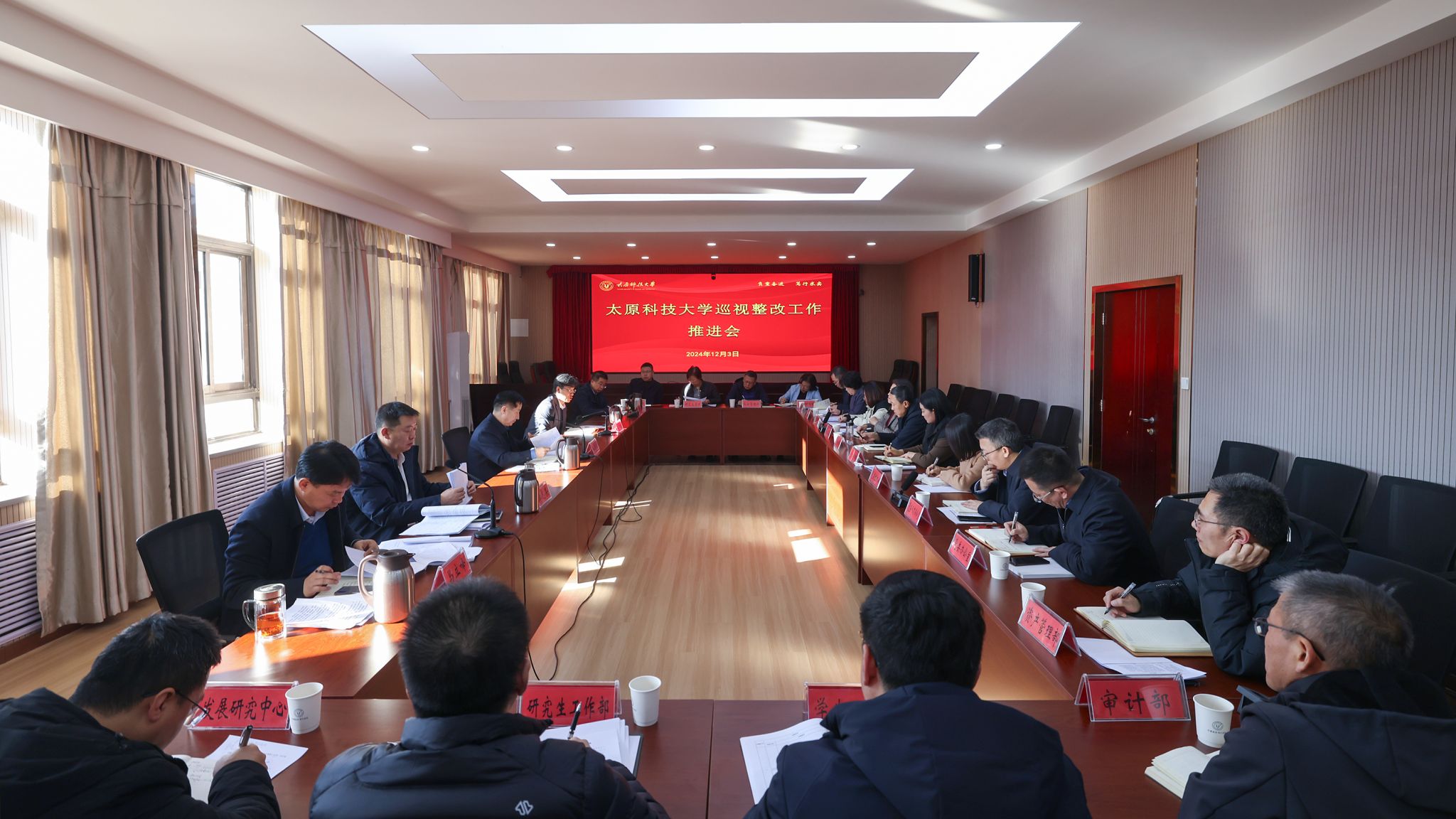 12月3日,best365官网在主楼四层召开巡视整改工作推进会。全体校领导、巡视整改工作领导小组及办公室成员、整改责任单位负责人参加会议。校党委书记白培康主持会议并讲话。