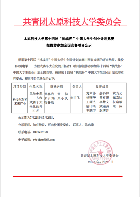 best365唯一官方网站第十四届“挑战杯”中国大学生创业计划竞赛拟推荐参加全国竞赛项目公示