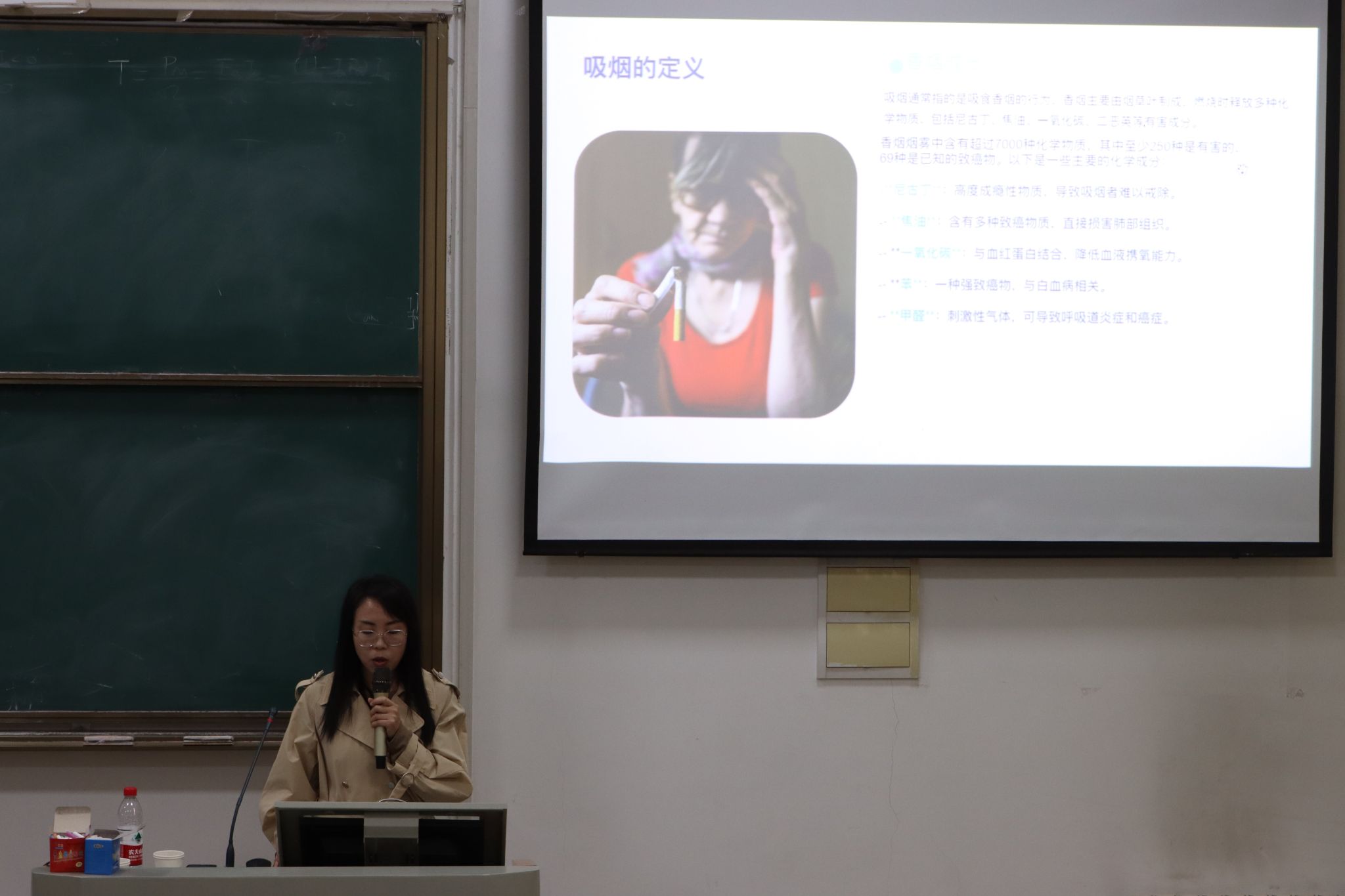赵婷通过详实的数据和生动的案例,深入剖析了吸烟对个人健康、家庭幸福及社会发展的多重危害。她指出,吸烟是导致肺癌、心血管疾病等多种疾病的主要危险因素,二手烟和三手烟同样对周围人群,尤其是儿童和孕妇,构成严重威胁;戒烟不仅是对个人健康的负责,更是对家庭和社会责任的体现。她鼓励“烟民”积极开始戒烟行动,树立健康的生活理念,科学健康饮食,坚持健康运动,取得家人、朋友、舍友的支持,共同制定并监督戒烟计划,用积极心态、持久毅力必能成功。
