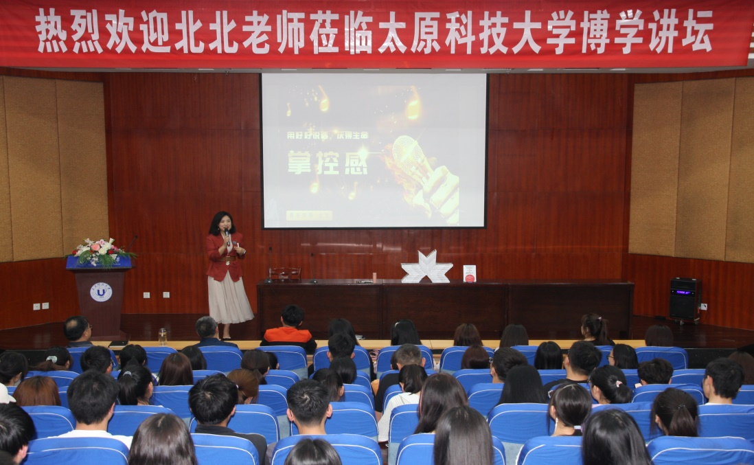 2021年5月19日下午,“金话筒”奖获得者、畅销书作家北北在best365官网图书六层报告厅作了题为“从不会说话到演讲高手”的主题讲座,best365官网200多名师生聆听讲座。本次活动由图书馆、校团委、人文社科学院、山西图书大厦共同主办。