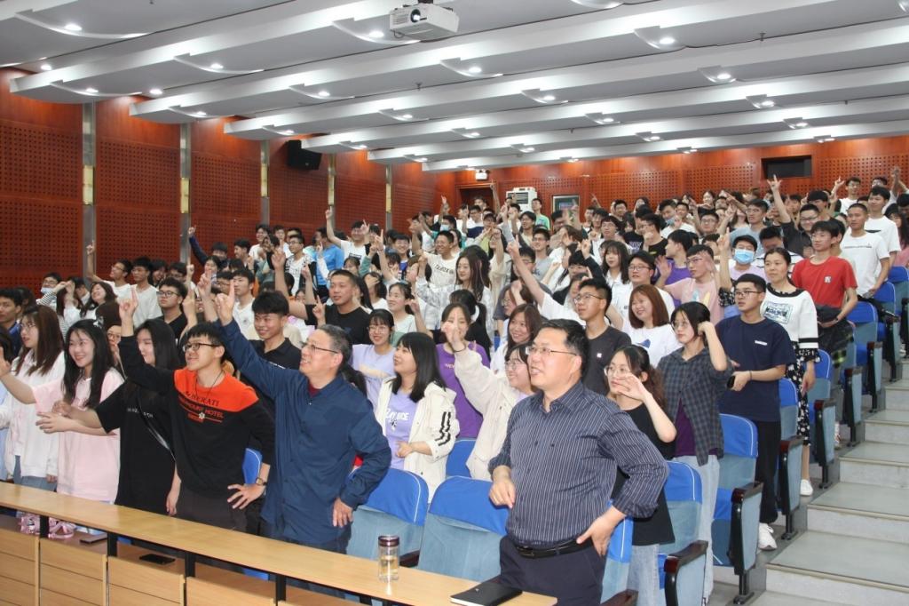 讲座伊始,北北老师首先分享自己的成长经历,用生动的案例帮助大家建立公众演讲的信心,理性分析演讲中可能出现紧张和恐惧的心理原因,并针对性地各个击破。帮助与会师生破除演讲中可能出现的心理障碍。北北老师重点讲述摆脱演讲紧张感和恐惧感的五大功法:(1)列出恐惧清单;(2)演讲前固定时间的强化练习;(3)进行针对性的心理压力测试;(4)做能掌控自己心理状态的事情;(5)临场前高能量姿势自我赋能。并通过师生的现场互动练习强化高能量姿势在演讲中的作用。