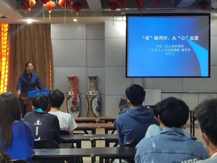 李贵兰老师从生理、情绪、认知、行为四个方面介绍了疫情下的应激心理反应,并重点阐释了疫情下大学生常见的心理问题及相应的调试方法。讲座紧紧结合同学们疫情防控封闭管理期间的生活实际,引导同学们要纾解调适,消除负面情绪。最后,李贵兰老师鼓励同学们,要保持乐观积极向上的精神风貌,弘扬积极天性,提升积极心理的力量,通过自身修为,达致幸福快乐,最终体验人生之“福流”。