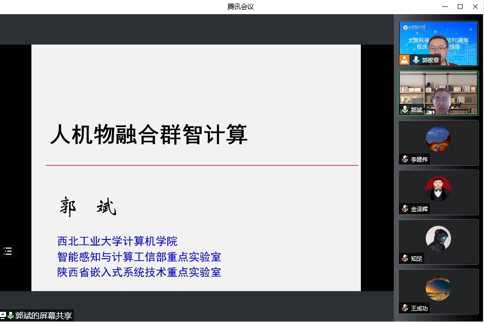 2022年6月2日,应计算机科学与技术学院和科学技术研究院邀请,西北工业大学教授郭斌在线上作了题为《人机物融合智能计算》的学术报告。报告由计算机科学与技术学院郭银章教授主持,best365官网160余名师生在线上线下倾听了郭教授的学术报告。