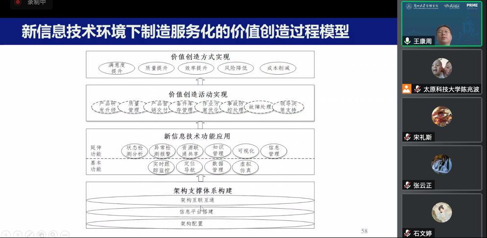 王教授用大量的案例介绍了服务型制造的重要性,系统阐述了新信息技术下服务型制造的价值、类型以及信息技术支撑制造服务化的流程,提出了信息技术下制造服务的价值创造过程模型,还从产品共享模式选择等方面介绍了团队的最新研究成果。