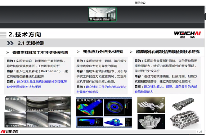尹慧琼介绍了潍柴集团的发展历程、战略目标、全球协同研发平台、企业文化和产品质量检测中心,围绕高端装备制造业先进、精准的检测技术,从装备制造业检测设备与技术现状入手,分析了国内外装备制造业检测技术目前存在的问题,重点讲述了装备制造业检测技术的未来发展方向及重点技术领域的关键共性计量技术难题。