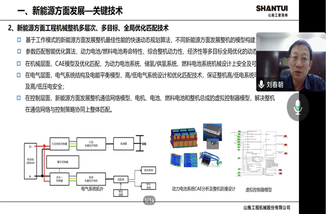 刘春朝针对“碳达峰、碳中和”背景下未来工程机械数字化、智能化、无人化和网联化的新发展格局,重点介绍了国内外新能源工程机械总体发展情况,纯电动、氢燃料等新能源工程机械整机的关键技术,无人驾驶工程机械数字化施工,智能推土机、压路机等无人驾驶工程机械核心技术与工程应用。