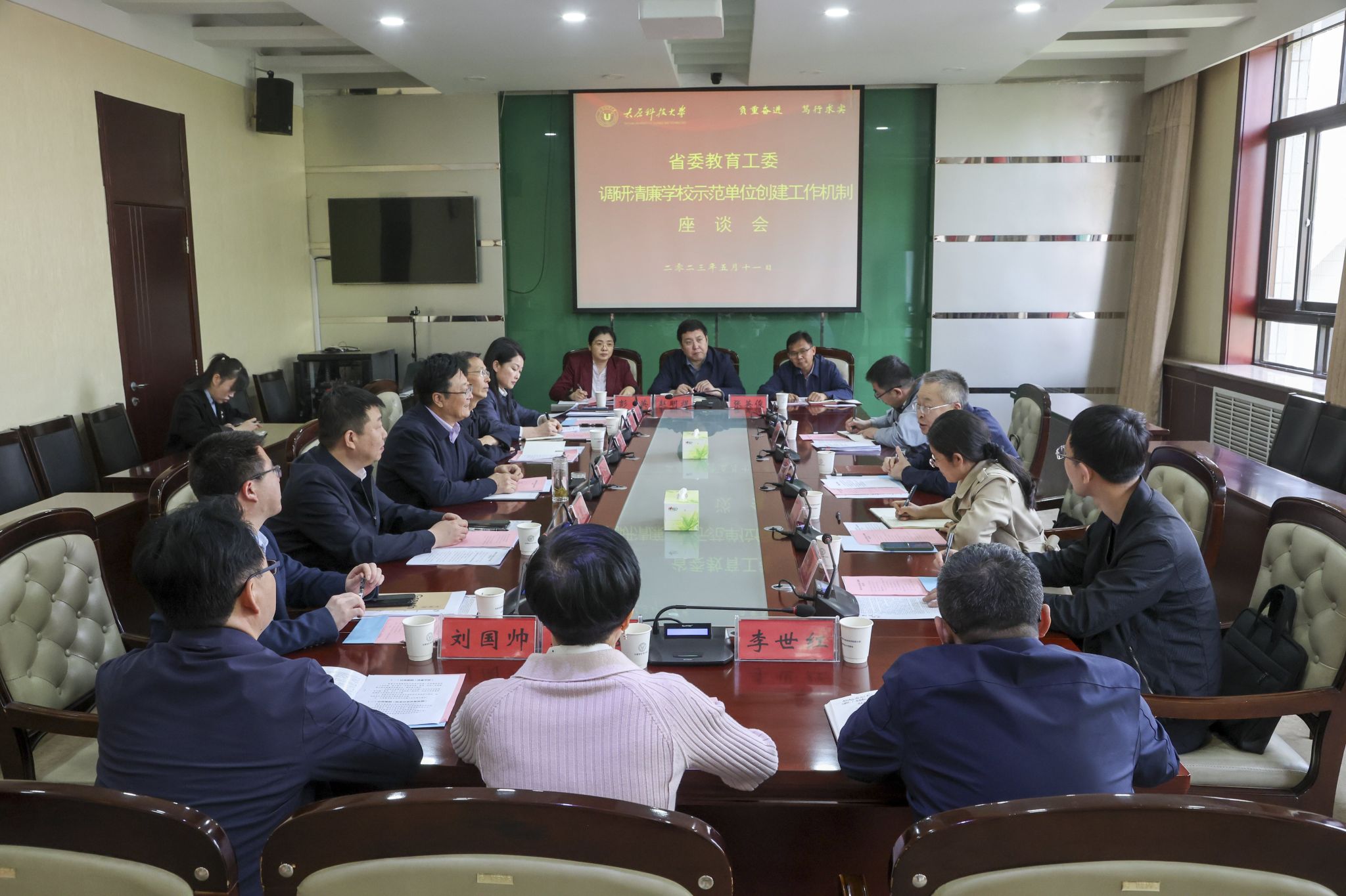 随后,在主楼2号会议室、四层会议室分别召开专题座谈会。座谈会上,校党委书记王志连、校长白培康结合调研主题介绍了best365官网在清廉学校建设、人才工作、院系议事决策机制方面的举措。与会人员结合工作实际,就推进清廉学校建设、人才引进等工作中存在的困惑以及堵点、难点等问题进行了深入交流。