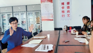 杨老师谈到,多少有一些,但在交流会上定好基调,大家不会有难为情或者不乐意的,毕竟学生学回来的是最新的东西,是值得大家学习的。我们要保持开放的心态,与时代同进步。现在知识更新速度迅猛,作为高校老师要练就聚集能量的“吸星大法”,要利用好社会对高校教师比较友好的优势,去博采众长。我还曾带着老师们奔赴兄弟院校交流学习手绘,听说那里有位学生在黄山手绘(行业里知名的手绘培训机构)学习过三次,而且成为了那里的导师助理,我们就专门去向那位学生“取经”,在餐馆里拿出纸笔就开始了交流学习,直到没有问题可问为止。