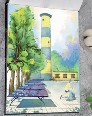 当下,尽管平日工作繁多,杨老师仍心有所念,想继续进行的是一本文创性质的手绘画册。画册中把科大一处处标志性或非标志性的景象收录于笔端,绘制于纸上:水塔、迎春、丁香、银杏、合欢花、几个并肩行走的女学生、寂静的开水房等等,这些意向是科大校园中再寻常不过的景象,却也是科大学子们过往岁月中抹不掉的萦绕。