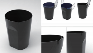 图注:杨老师设计的“顺手”簸箕和“顺手”垃圾桶