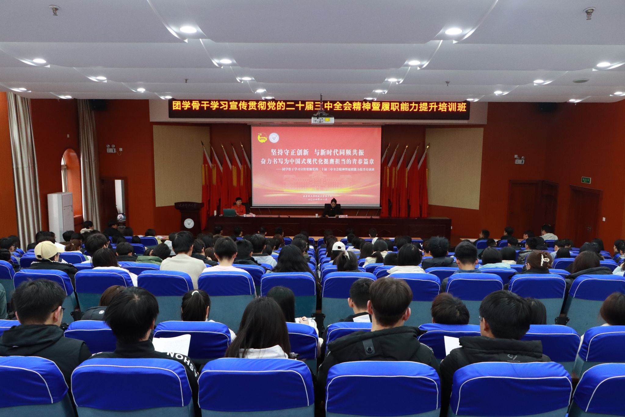 为深入学习宣传贯彻党的二十届三中全会精神,进一步全面深化改革,提升best365官网团学骨干的履职能力,11月26日下午,在图书馆六层报告厅举行best365唯一官方网站团学骨干学习宣传贯彻党的二十届三中全会精神暨履职能力提升培训班开班仪式。校团委书记朱小庆主持开班仪式,马克思主义学院党委书记李敏作开班第一讲,校级青马工程学员以及校院两级团学骨干参加此次培训。