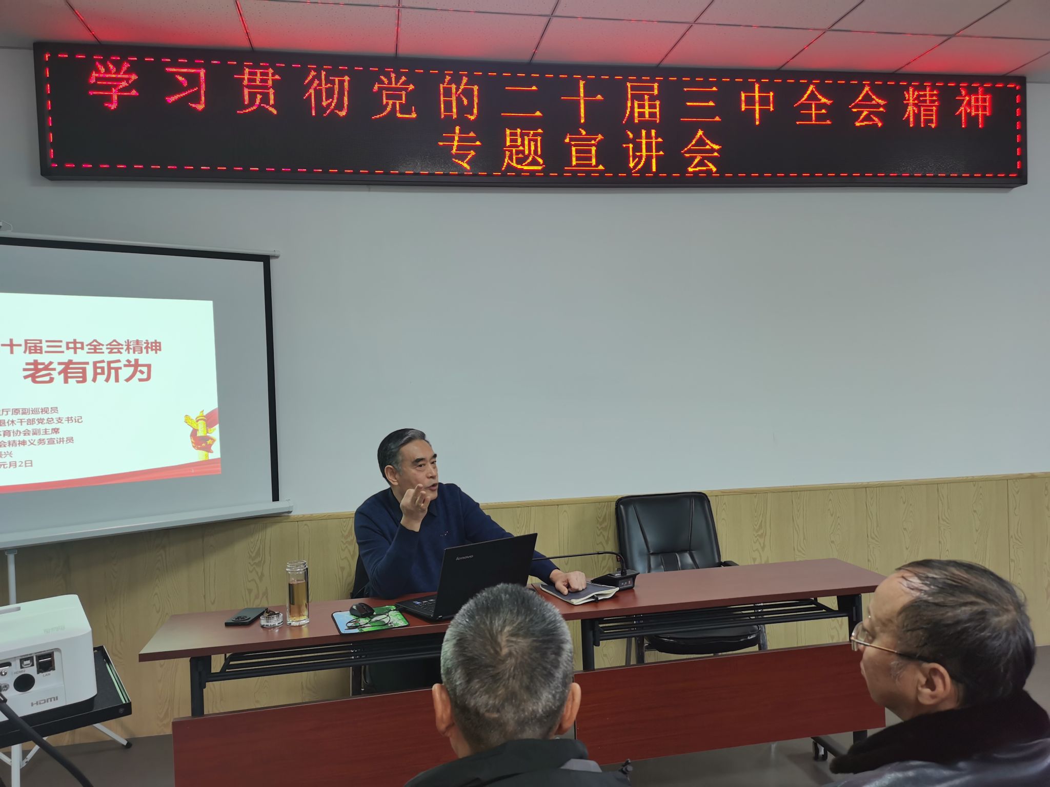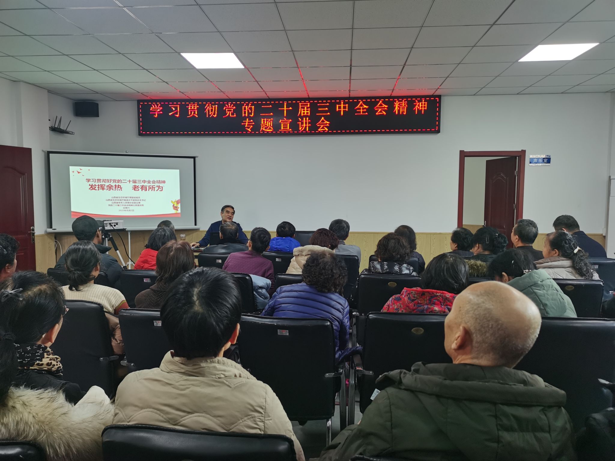 1月2日下午,离退休党委在科大世纪花园离退休活动中心举办“学习贯彻党的二十届三中全会精神—发挥余热,老有所为”为主题的宣讲会。本次宣讲会邀请到山西省生态环境厅离退休干部党总支书记、党的二十届三中全会精神宣讲员白振兴同志,离退休党员50余人参加了报告会。报告会由离退休党委书记、离退休工作部部长眭红亮同志主持。