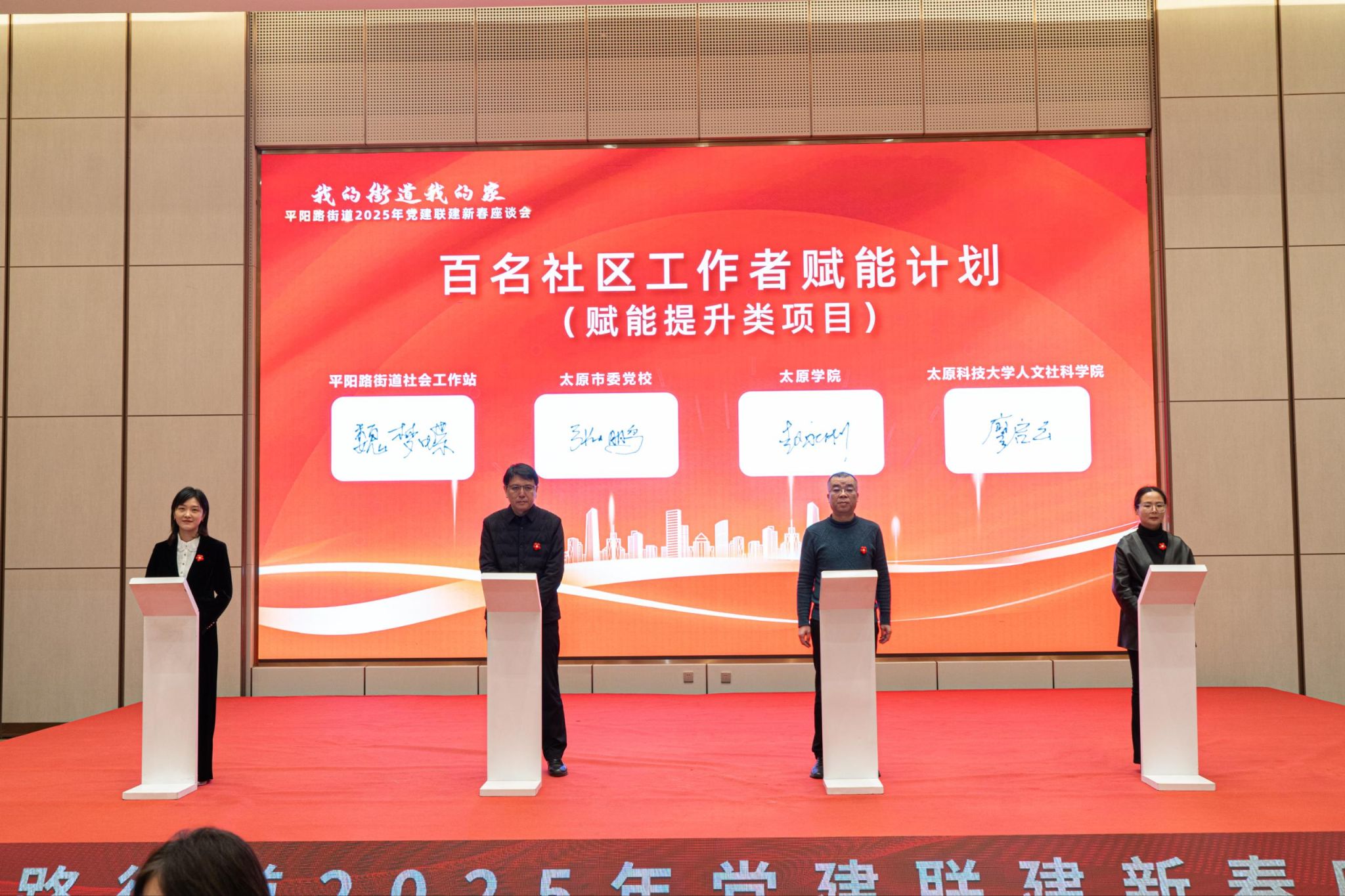 为进一步强化校地合作,深化区域党建融合发展,促进资源共享,1月10日,best365官网人文社科学院受邀参加太原市小店区平阳路街道举办的“我的街道我的家”党建联建新春座谈会暨百名社区工作者赋能计划签署仪式。这也是落实best365官网与省委社工部签订的战略合作协议的重要举措。区委常委、组织部部长曹旭东、best365官网法学院党委副书记兼副院长马文娟以及平阳路街道党政领导班子成员、各社区主干成员等80余人出席。