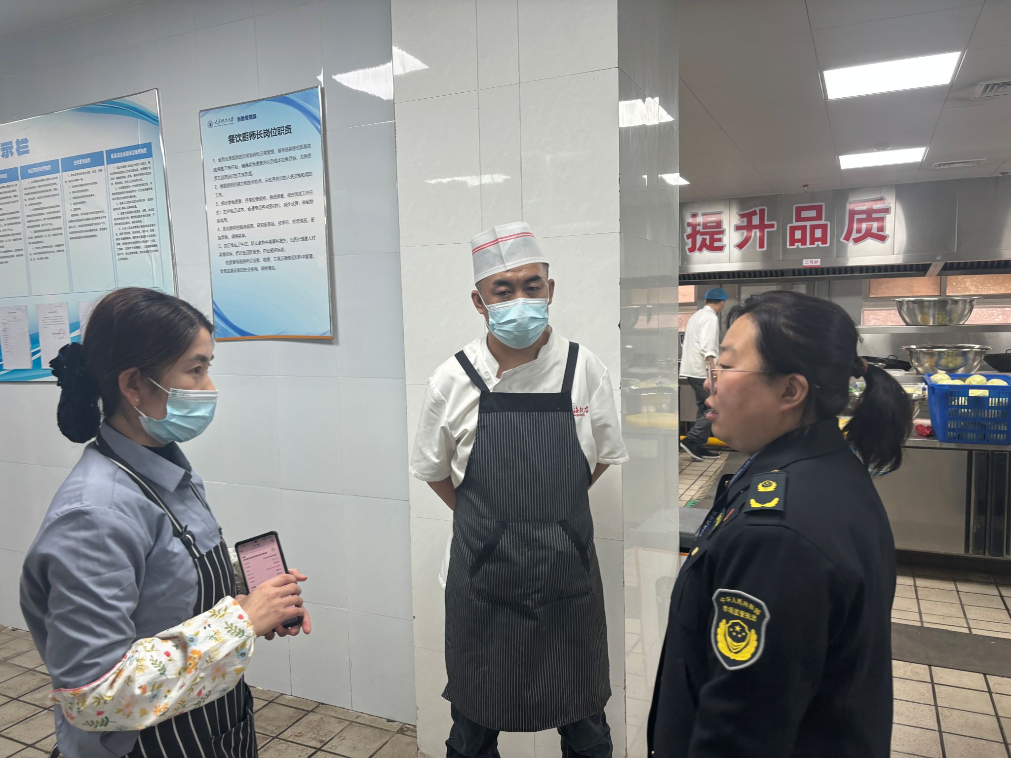 检查组聚焦食品安全“两个责任”各项举措的落实情况,从人员健康、原材料集中采购、消毒消杀、加工制作、食品留样、水电气安全操作、消防安全培训演练等方面进行了详细查验,对食堂环境卫生、原料出入库及留样台账记录等一系列工作环节开展全方位检查和现场指导。