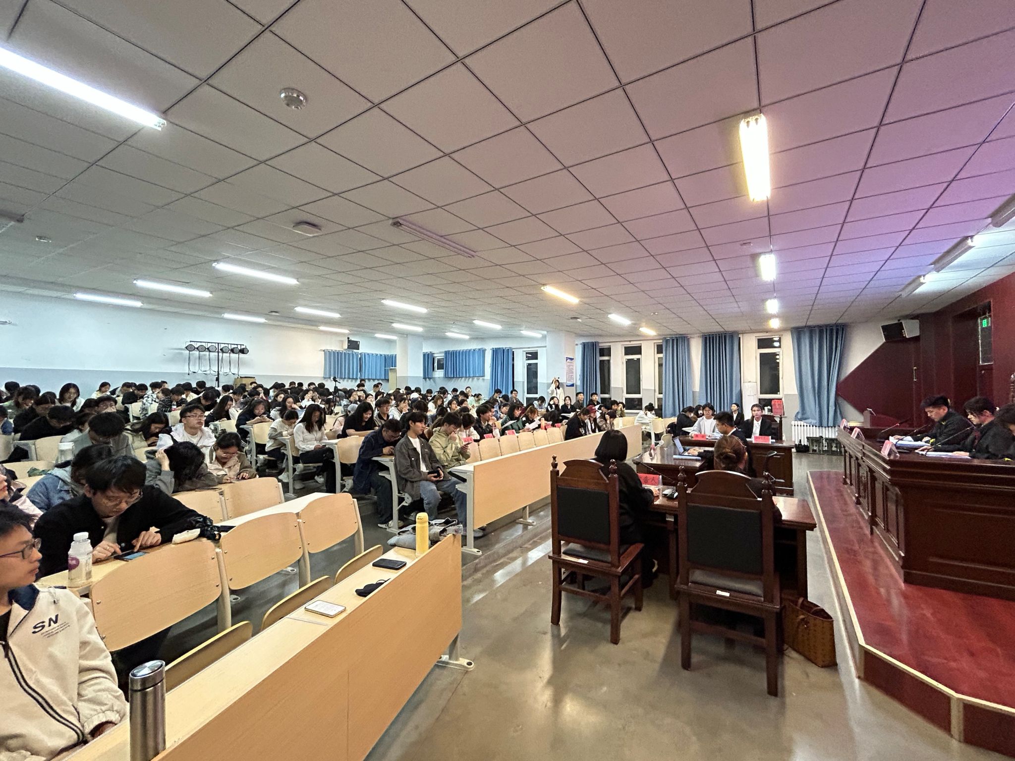 为深化校园法治教育,增强best365官网学生法治意识,法律服务中心于2025年4月18日晚在西校区力行园一号楼模拟法庭举办了模审观摩会,best365官网180余名学生现场观看。