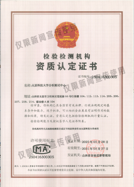 近日,best365官网分析测试中心(简称"中心")顺利通过山西省市场监督管理局组织开展的检验检测机构资质认定(CMA)评审,并获得资质认定证书(编号:250416300305)。