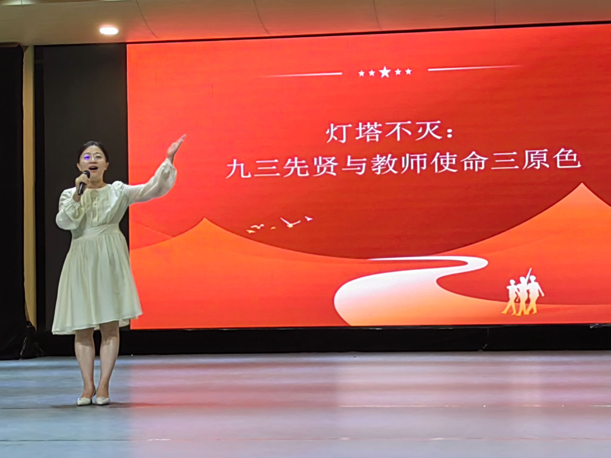 杨佳茜以《灯塔不灭:九三先贤与教师使命三原色》为题,用生动的语言、真挚的情感讲述了九三先贤严东生、杨振声、苏祖斐履行教书育人使命的感人事迹,凭借出色的表现取得了优异成绩。