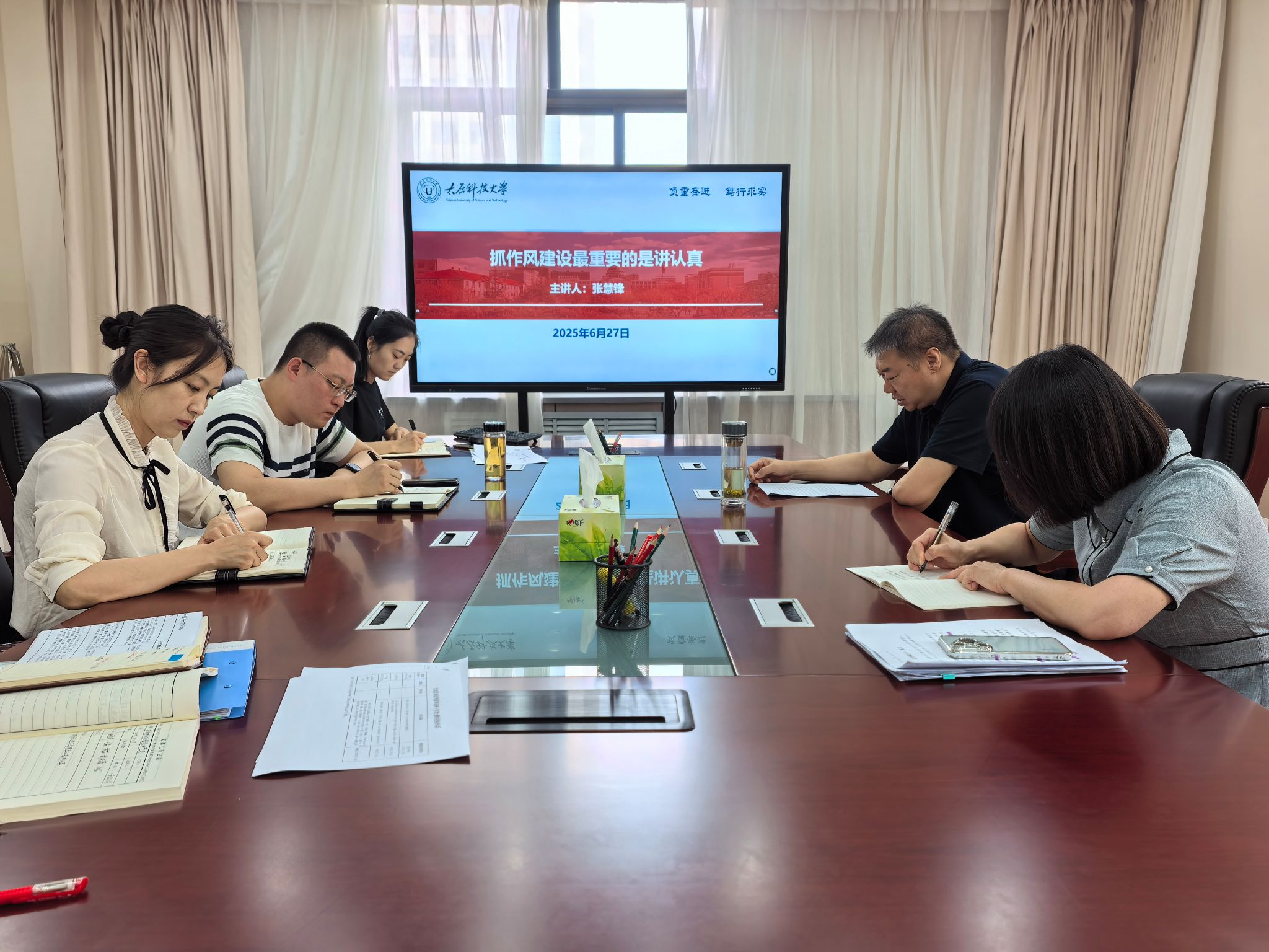 为深入学习贯彻习近平总书记关于加强党的作风建设的重要论述,锲而不舍贯彻落实中央八项规定及其实施细则精神,6月27日,党委组织部党支部书记张慧锋同志以“抓作风建设最重要的是讲认真”为主题,在主楼一号会议室为支部全体党员讲授专题党课。