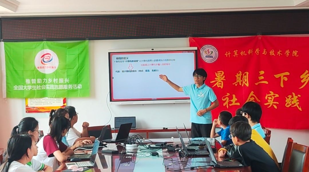 7月6日至11日,计算机科学与技术学院“E言益行 昔阳推普”实践队赴山西省昔阳县开展“推普助力乡村振兴”暑期社会实践。该团队入选2025年“推普助力乡村振兴”全国大学生暑期社会实践志愿服务重点团队,由来自计算机科学与技术学院的5名党员、3名入党积极分子组成,指导老师为学院团委书记李明倩,实践队建立临时党支部,通过构建“党建红”引领“科技蓝”服务模式,切实将党的组织优势转化为乡村振兴实效。