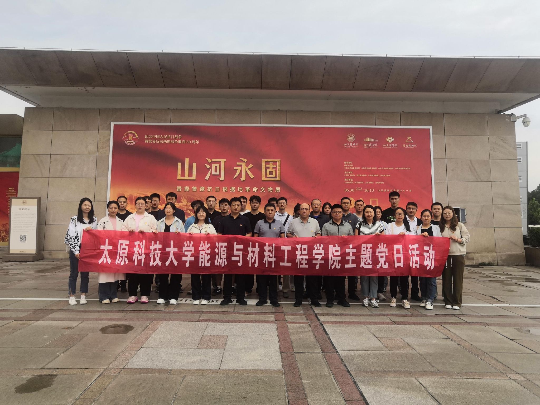 为大力弘扬伟大抗战精神和太行精神,引导广大师生从革命历史中汲取奋进力量,推动学院党建工作提质增效,8月28日上午,能源与材料工程学院组织全体师生党员赴山西博物院会展中心参观“岂曰无名山河为证——纪念中国人民抗日战争暨世界反法西斯战争胜利80周年党的隐蔽战线主题展”及“山河永固——晋冀鲁豫抗日根据地革命文物展”,开展沉浸式红色教育实践活动。