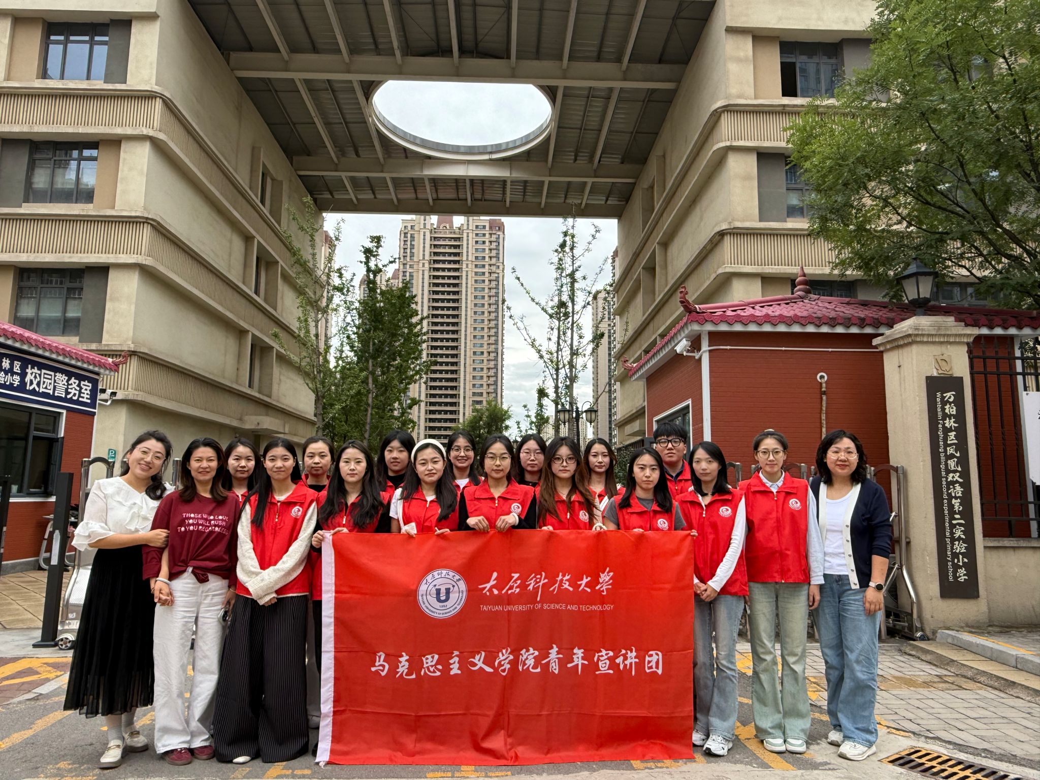 为引导少年儿童铭记历史、传承红色基因,9月18日,马克思主义学院青年学生理论宣讲团走进太原市万柏林区凤凰双语小学,开展以“重温光辉历史 赓续红色血脉”为主题的宣讲活动,马克思主义学院与凤凰双语小学相关老师、宣讲团全体成员和凤凰双语小学四年级学生参加了此次活动。