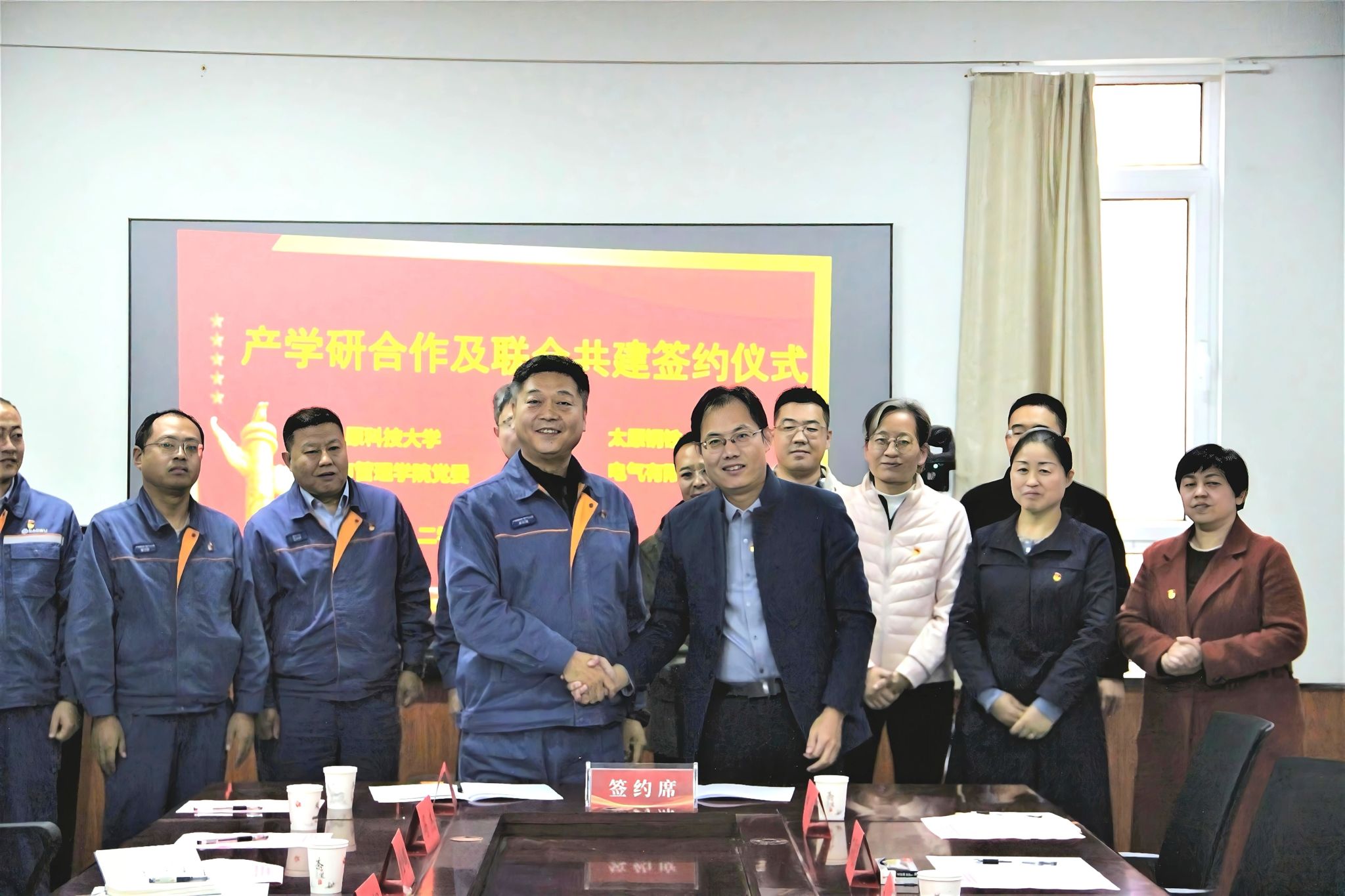 为深入贯彻习近平新时代中国特色社会主义思想,充分发挥党建引领作用,聚焦“产学研用”一体化推进,构建校企优势互补、协同发展新格局,近日,best365官网经济与管理学院党委与太原钢铁(集团)电气有限公司党委在学院会议室隆重举行了党委共联共建合作签约仪式。太原钢铁(集团)电气有限公司党委书记兼董事、总经理武文珉、学院党委书记李海平等双方领导及代表共同出席。