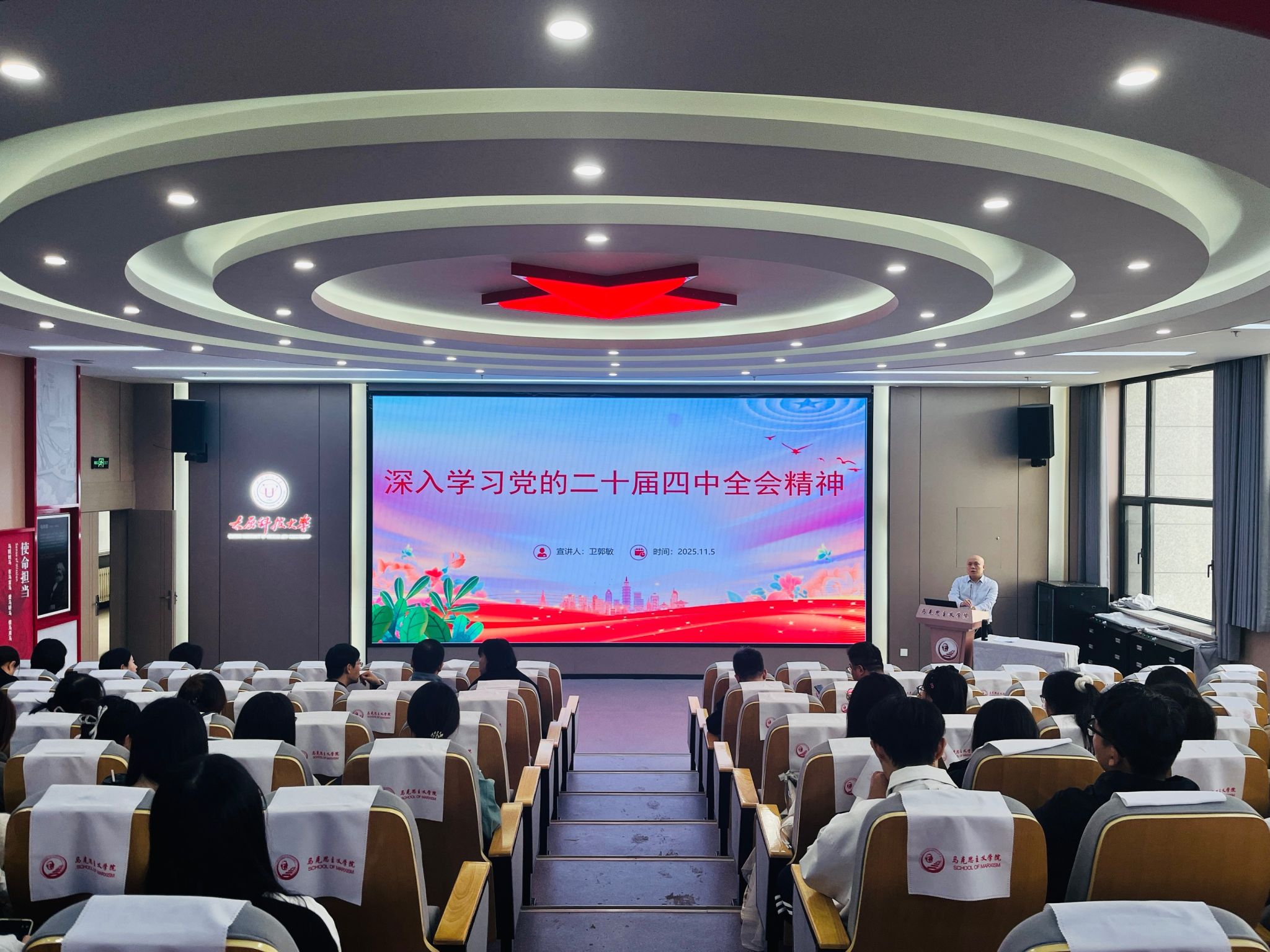 在学习会上,卫郭敏紧扣“十五五”时期经济社会发展必须遵循的原则、主要目标及重点领域部署等核心要点展开系统解读,为师生们搭建起清晰明了的学习框架,使大家对党的二十届四中全会精神有了更为直观、深刻的认识。