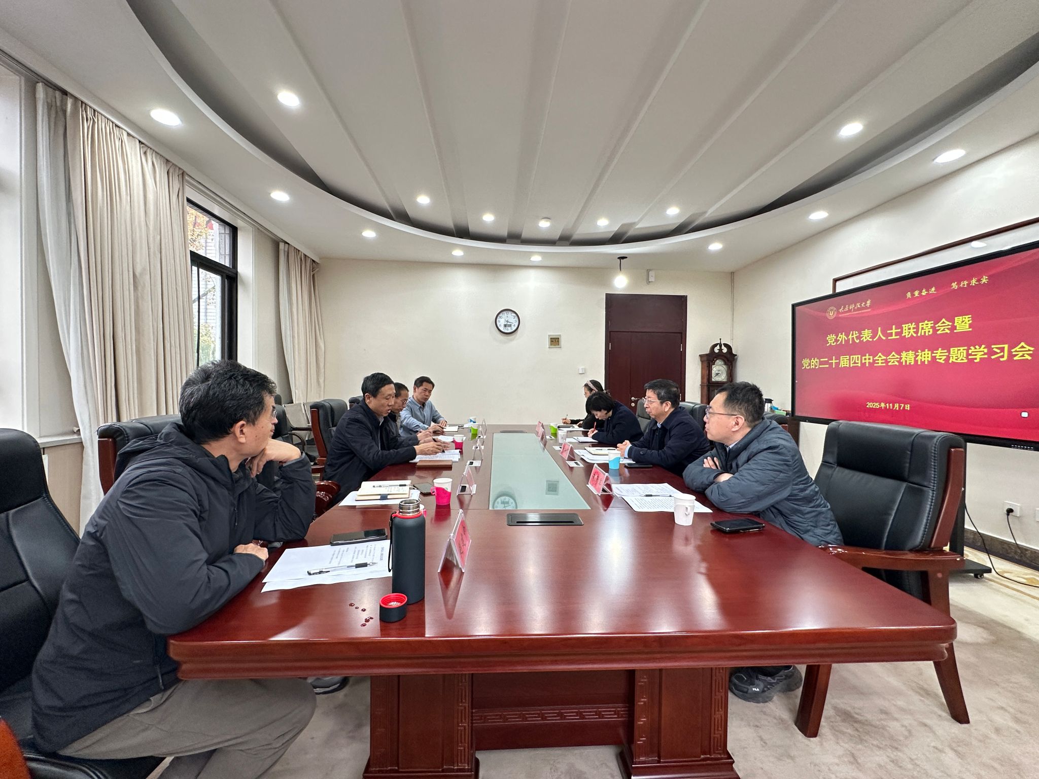 11月7日下午,党委统战部在行政楼一号会议室组织召开党外代表人士联席会暨党的二十届四中全会精神专题学习会。学校各民主党派基层组织负责人、无党派代表人士及党委统战部全体参加了会议。会议由校党委常委、统战部部长张文杰主持。