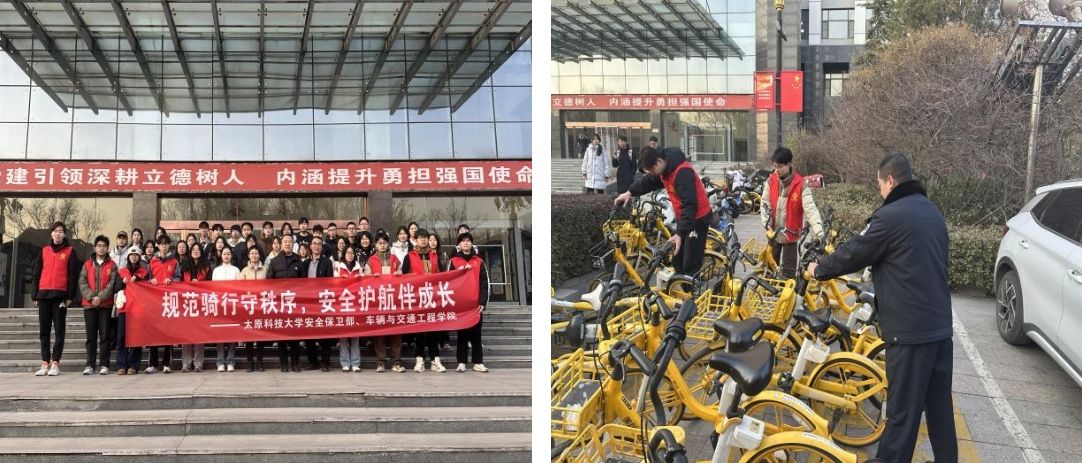 学院于12月5日联合安全保卫部,组织全院学生党支部党员开展校园交通文明专项整治活动。活动采取“支部包干”形式,各学生党支部认领责任区域,党员分组行动:一方面集中整理乱停放的共享单车;另一方面,在校园主干道交叉口、宿舍区出入口、教学楼周边等重点路段,对骑行未佩戴头盔、逆行、违规载人等行为进行耐心劝导和安全教育,讲解违规行为的危害。此次活动显著提升了同学们的交通安全意识,营造了“党员引领、全员参与”的文明骑行氛围。
