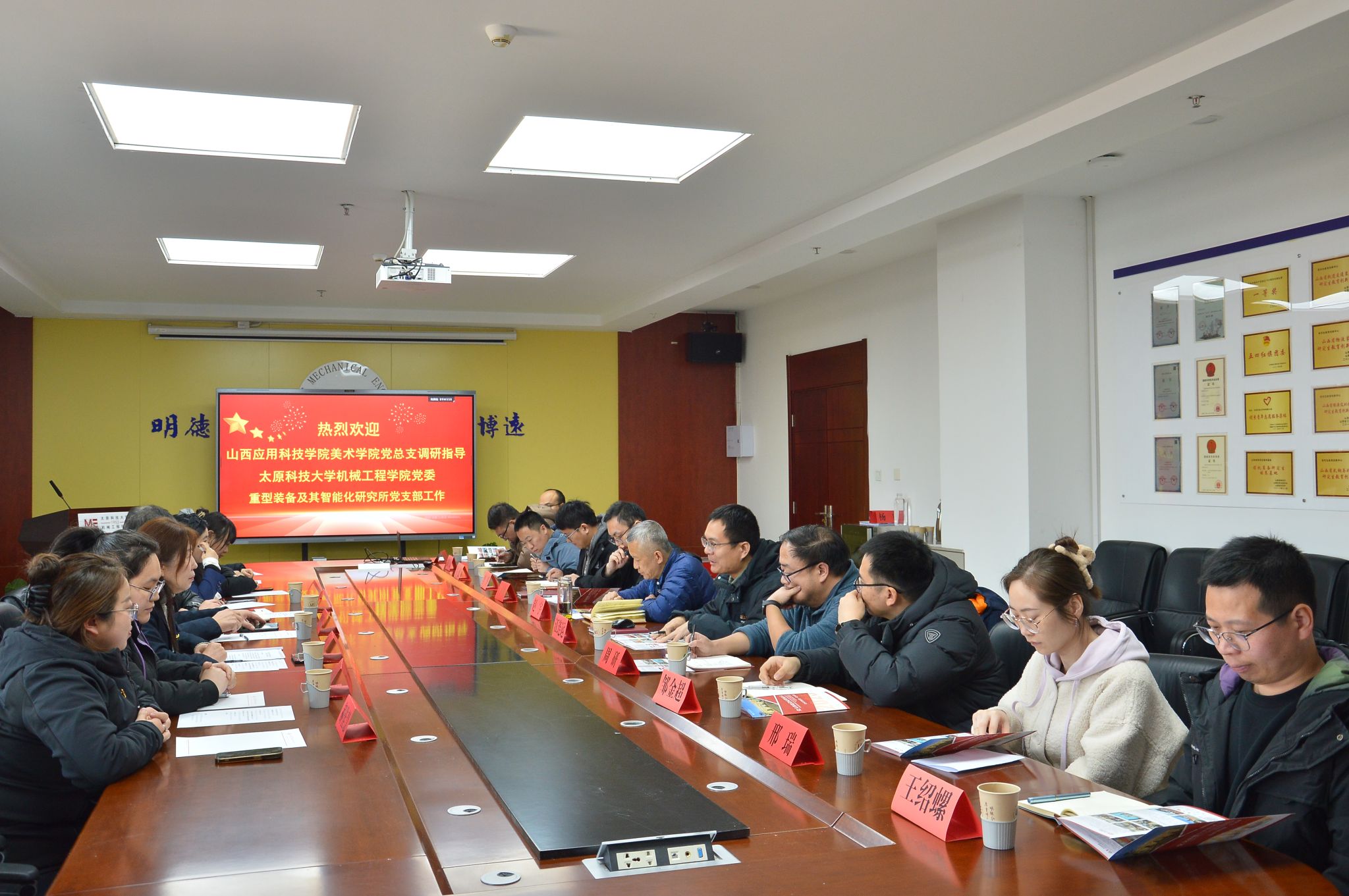为深入学习贯彻党的二十届四中全会精神,推进新时代高校党建示范创建与质量创优工作,落实山西省高校党建工作规范提升专项行动和best365唯一官方网站党委党建规范提升专项行动要求,机械工程学院党委积极探索跨学科、跨院校基层党建联建新模式。近日,机械工程学院党委与山西应用科技学院美术学院党总支,在best365唯一官方网站开展“学习党的二十届四中全会精神,共谋党建联建新发展”主题交流活动。