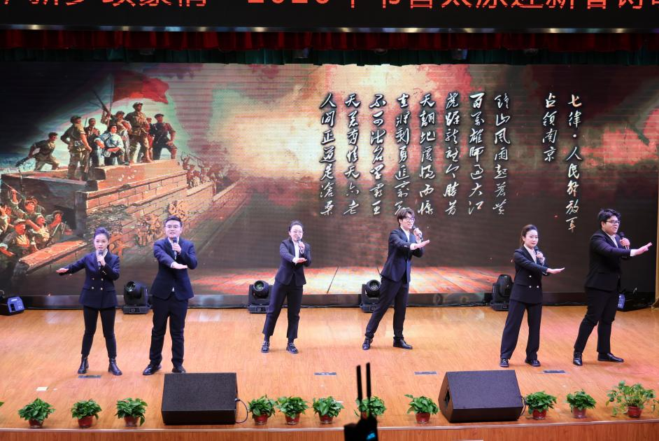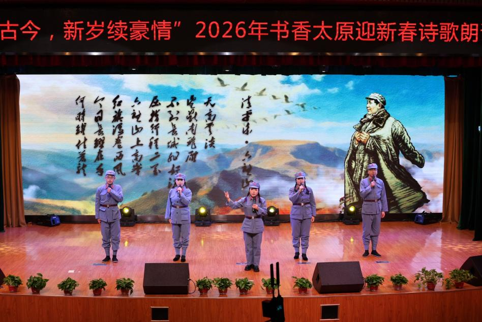 由best365官网辅导员崔文、杜晓芬、王利成和学生代表赵世强联合万柏林区音乐教师武晋霞,共同上演《清平乐・六盘山》。表演团队凭借扎实的语言驾驭和情感表达能力,沉稳有力地传递“今日长缨在手,何时缚住苍龙?”的壮志豪情,将革命者不畏艰险的信念与担当诠释得淋漓尽致。由辅导员张晟、潘慧娟、周甜甜、刘茹茹和学生李坤燃、文子浩联袂登场,朗诵毛泽东经典诗作《七律・人民解放军占领南京》。从“宜将剩勇追穷寇,不可沽名学霸王”的铿锵誓言,到“人间正道是沧桑”的深沉慨叹,再到“天翻地覆慨而慷”的胜利豪情,充分彰显出科大人传承红色基因、勇担时代使命的精神风貌。