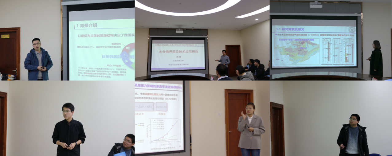 会议围绕“地质资源低碳开发”和“太阳能综合利用”两个主题展开,共有10位青年教师分别围绕煤层气生物工程与碳封存、水合物开采及技术应用、塔里木盆地顺北地区超深层油气藏地球化学机理、气—热赋存环境中煤的动态力学响应特征及破裂机制、开采扰动条件下深部煤体的损伤行为和渗透机制、计算金属矿采动地表移动范围的理论方法、CdS基半导体对木质纤维素衍生α—羟基酸光催化转化的选择性调控、锰基氧化物表面改性及其光/热催化氧化甲苯的性能及机理、太阳能光热过程在水处理中的应用、金属有机框架光催化等内容进行了精彩的学术报告。