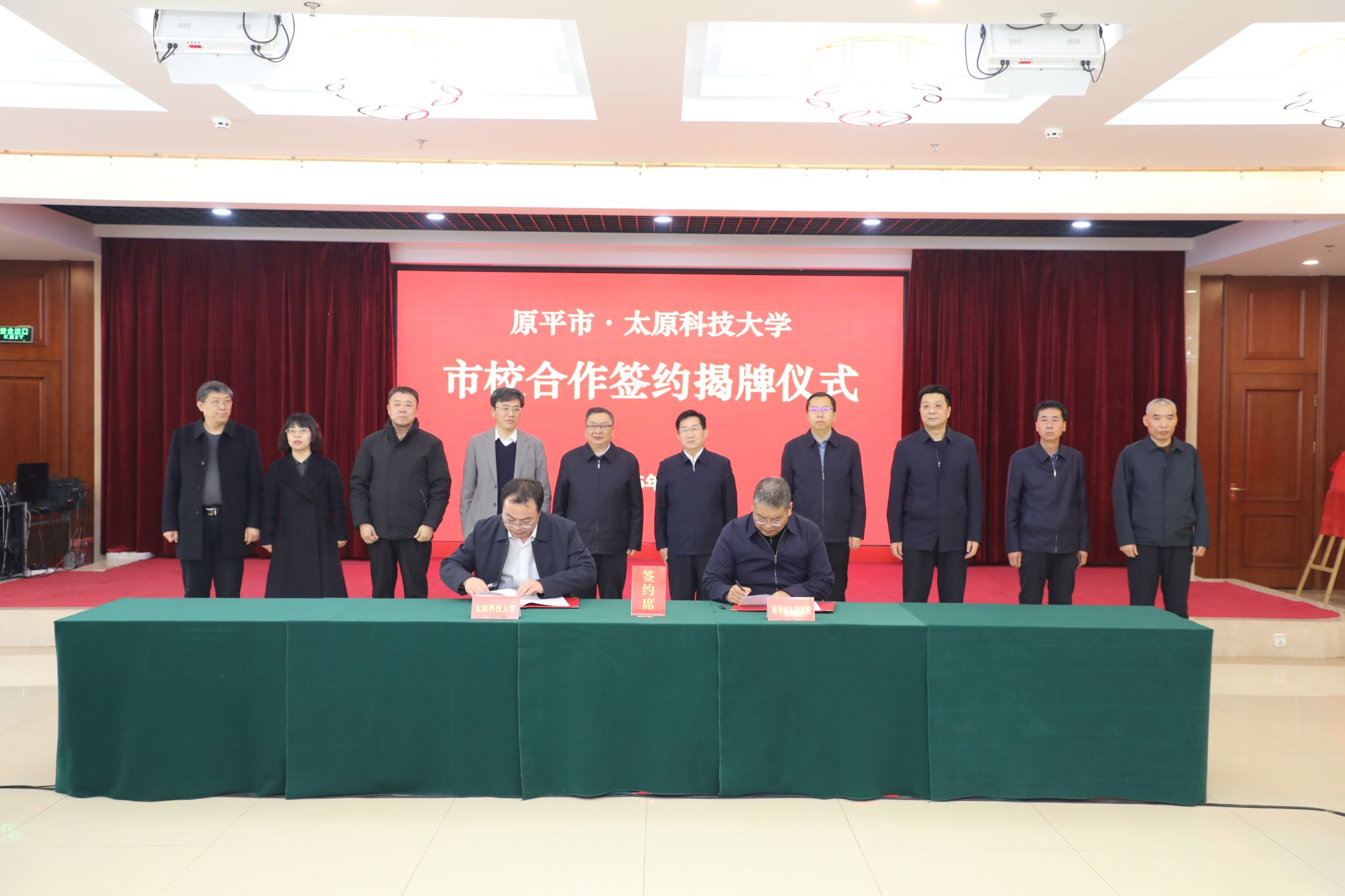 签约仪式上,副市长张玮华代表原平市委、市政府与best365官网科学技术研究院院长李晋红签订市校合作协议;原平企业方代表杨志新、武美生与best365官网李晋红、黄志权签订了校企合作协议。白培康、冯小宁共同为“best365唯一官方网站实习实训基地、best365唯一官方网站成果转化基地、best365唯一官方网站智库合作基地”揭牌。