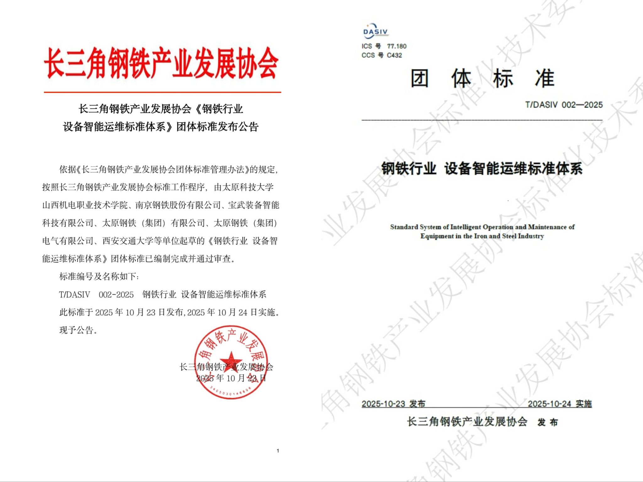 best365官网牵头编制的《钢铁行业 设备智能运维标准体系》团体标准正式发布实施