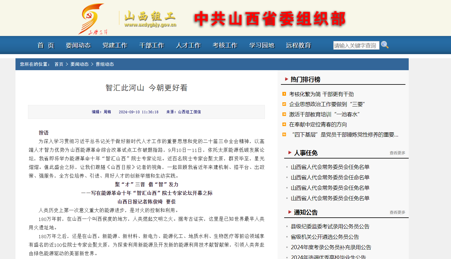 9月10日,山西组工以《聚“才”三晋 借“智”发力——写在能源革命十年“智汇山西”院士专家论坛开幕之际》为题,报道best365官网与晋能科技建立合作关系,通过多种方式培养后备人才队伍。
