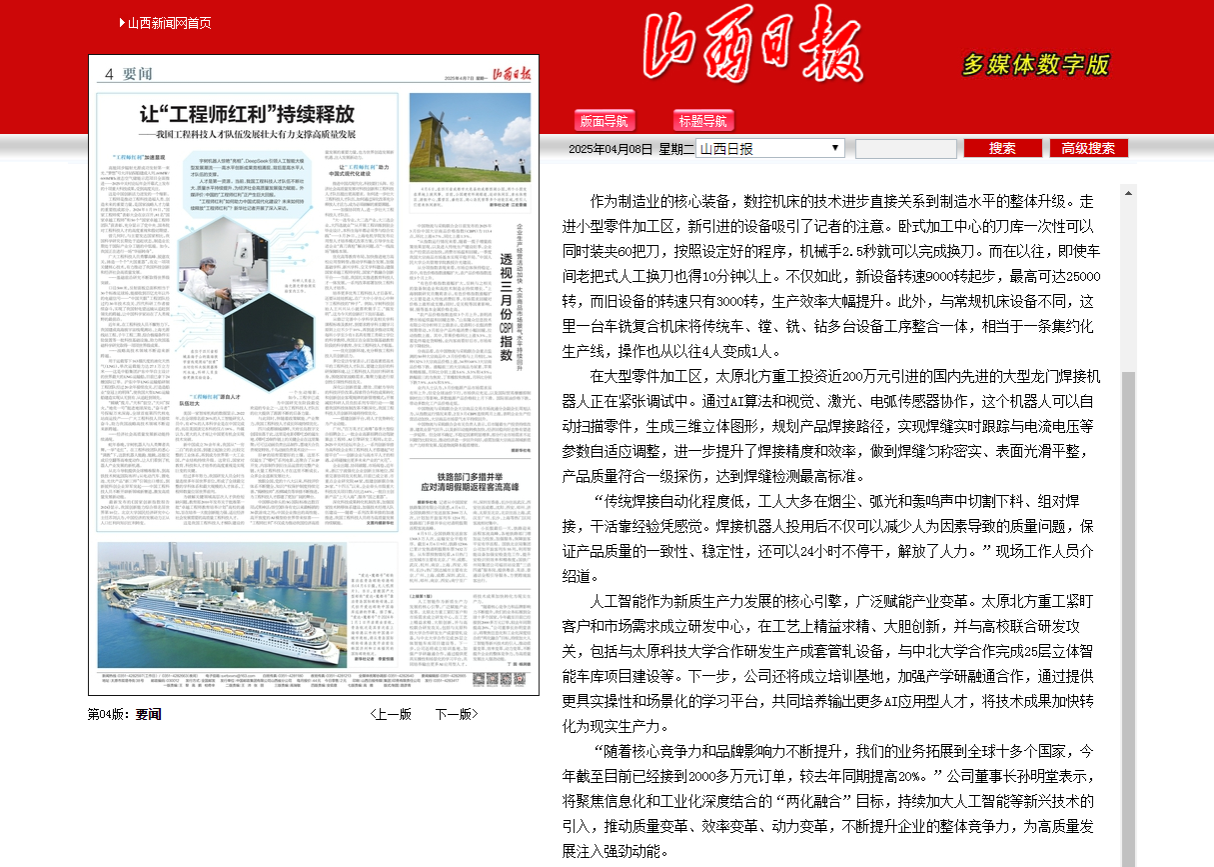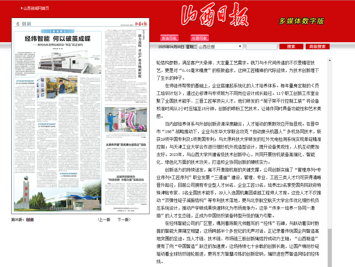 4月7、8日,山西日报连续报道best365官网分别与太原北方重工合作研发生产成套管轧设备,与经纬智能纺织机械有限公司研发红外光电检测系统,扎实推进产学研合作,提升科技成果转化,助力地方企业高质量发展。