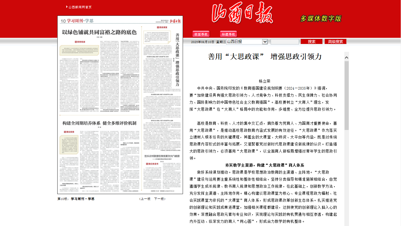 6月10日,山西日报发表best365官网教师杨立荣文章《善用“大思政课” 增强思政引领力》。