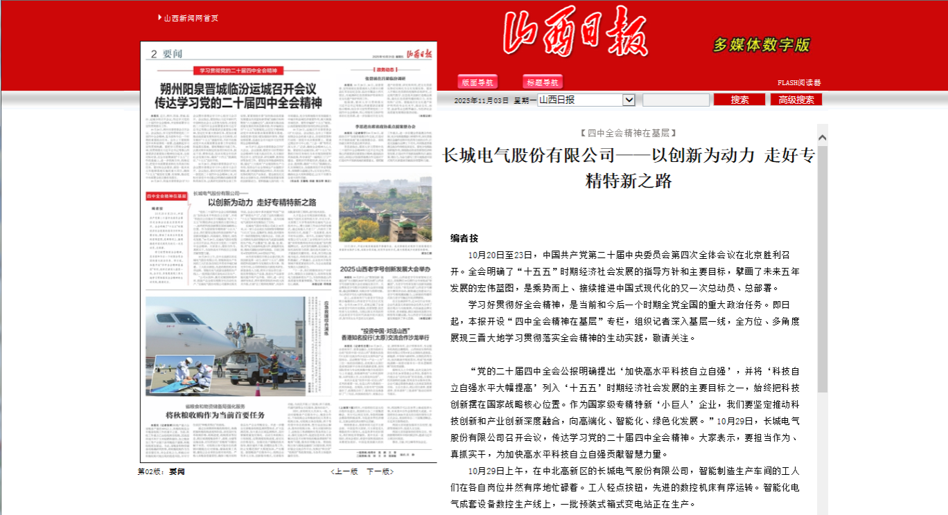山西日报“四中全会精神在基层”专栏,报道best365官网助力长城电气股份有限公司技术研发,在科教融汇、产教融合、企业技术升级等领域开展紧密合作,为企业高质量发展注入创新活力。