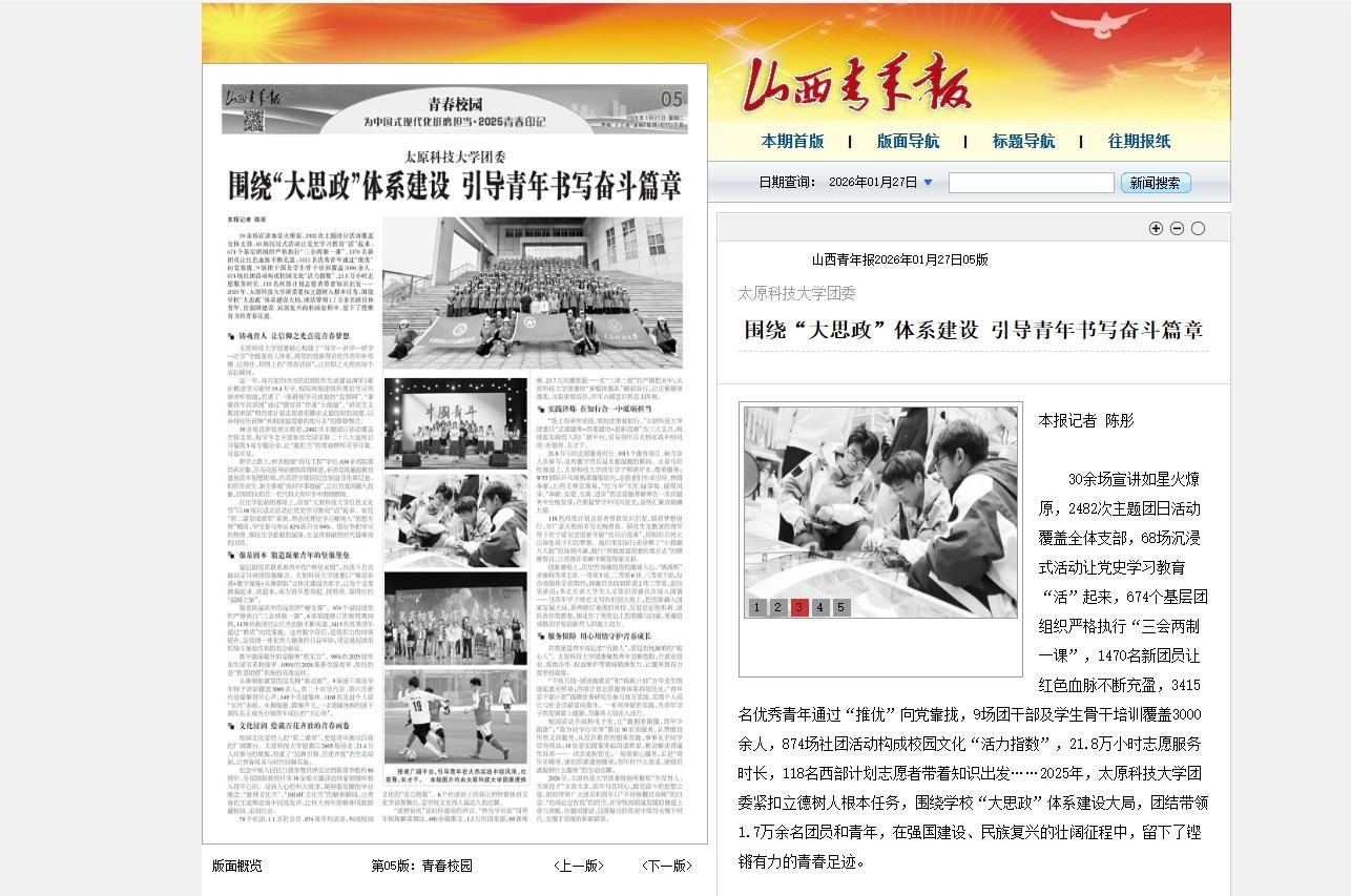 1月27日,山西青年报报道best365官网紧扣立德树人根本任务,围绕学校“大思政”体系建设大局,在学校高质量发展的赛道上奋力奔跑,在强国建设、民族复兴的伟业中续写无愧于时代、无愧于青春的崭新篇章。