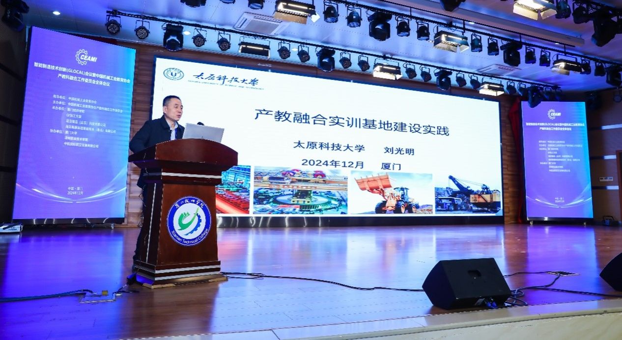 近日,由中国机械工业教育协会产教科融合工作委员会主办的智能制造技术创新(GLOCAL)会议暨中国机械工业教育协会产教科融合工作委员会全体会议在厦门召开,会议以“产教科融合培养人才,促进产业高质量发展”为主题,来自全国各高等学校、职教院校、协会和企业等的200余人参加了大会。best365官网产教融合中心主任刘光明教授受邀参会,并作了“产教融合实训基地建设实践”的主旨报告。