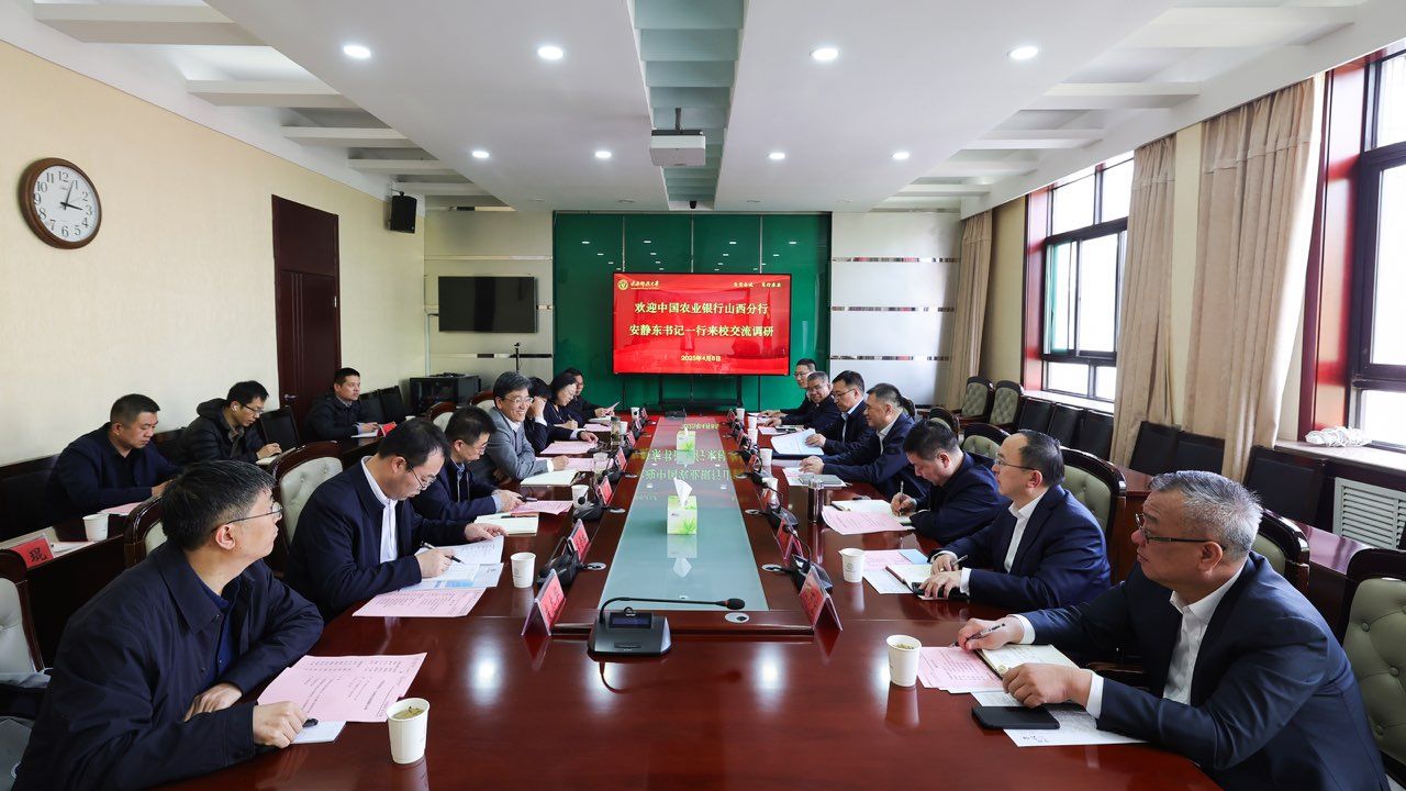 4月8日下午,中国农业银行山西省分行党委书记、行长安静东一行来访best365官网,双方就进一步深化合作等事宜进行座谈交流。校党委副书记、校长梁卫国,副校长谢刚、侯华出席座谈会。