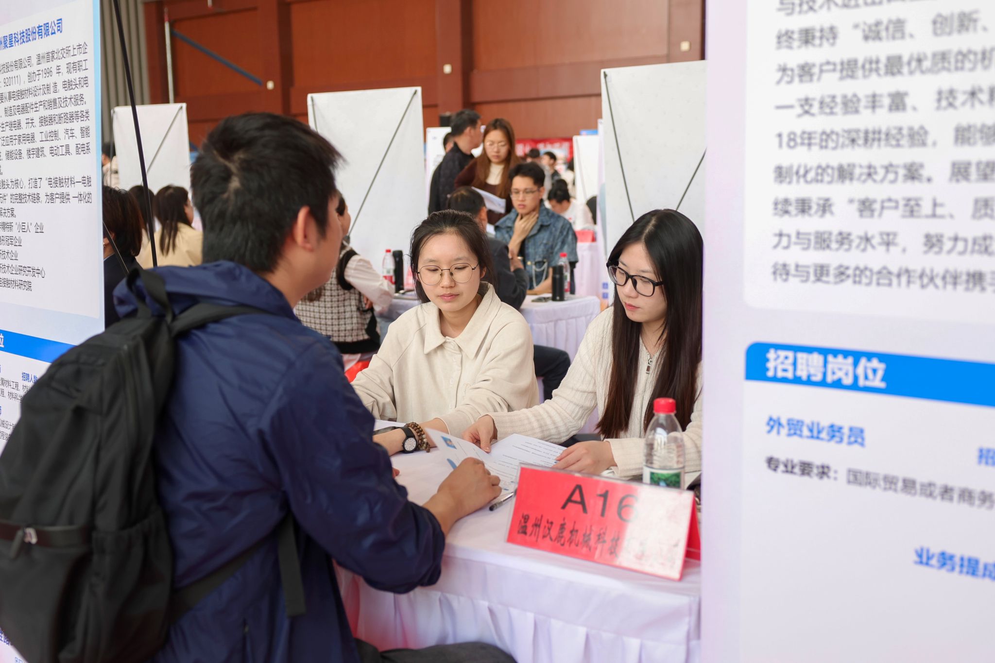 本次招聘会吸引了中冶(上海)钢结构科技有限公司、江苏通用科技股份有限公司、温州聚星科技股份有限公司等195家单位参会,涉及机械制造、材料工程、电子信息、能源化工、经济管理、法律服务等众多领域,其中浙江温州与山西忻州分别组织该市产业特点鲜明的83家、36家企事业单位入校招聘,双选会累计提供岗位需求人数达5800余人次。