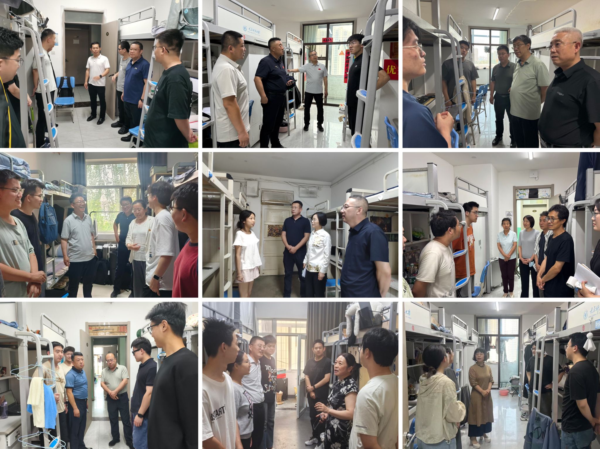 学校党委高度重视此次专项行动,成立专项行动领导组。学生工作部统筹协调,各学院组建工作组,形成“学校-学院-班级”三级联动机制,对各学院党政主要负责人、辅导员走访宿舍作出明确要求。在毕业季来临之际,全体校领导带领职能部门和学院负责人全覆盖深入宿舍,走访慰问毕业生,广泛倾听学生心声,积极回应学生关切,对宿舍安全等方面进行全面检查。