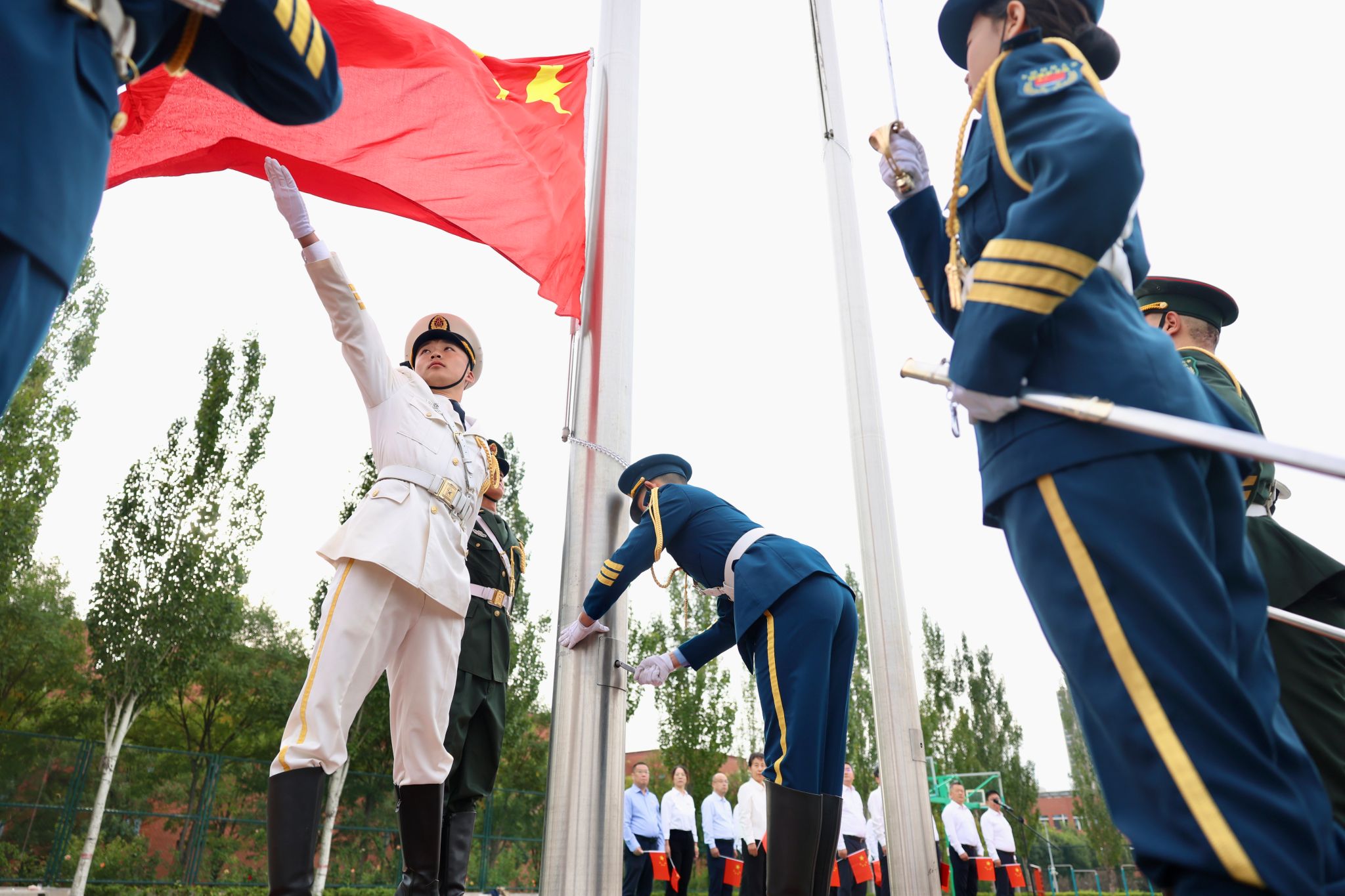 参加升旗仪式的师生纷纷表示,将以坚定的信念和饱满的激情,投身到学习和工作中去,奋发图强、锐意进取,奋力谱写学校高质量发展的新篇章。