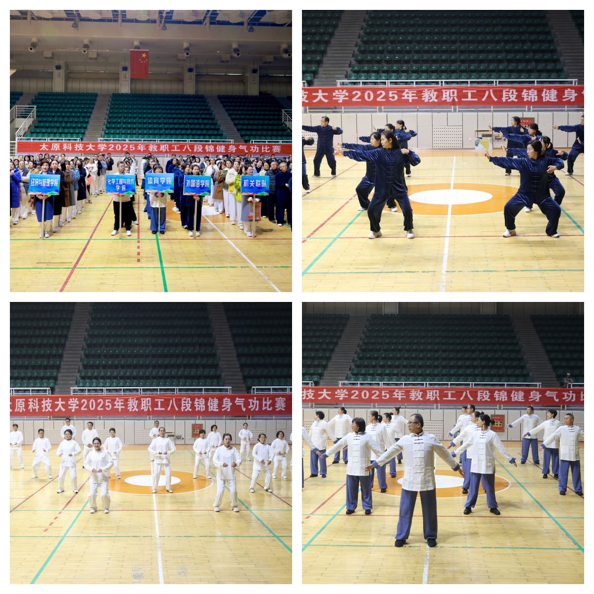 2025年10月22日下午,由校工会、校妇联主办,体育学院承办的best365唯一官方网站2025年教职工八段锦健身气功比赛在学校奋进体育馆举行,由各基层分工会组建的12支参赛队伍、250余名教职工满怀热情同场竞技。