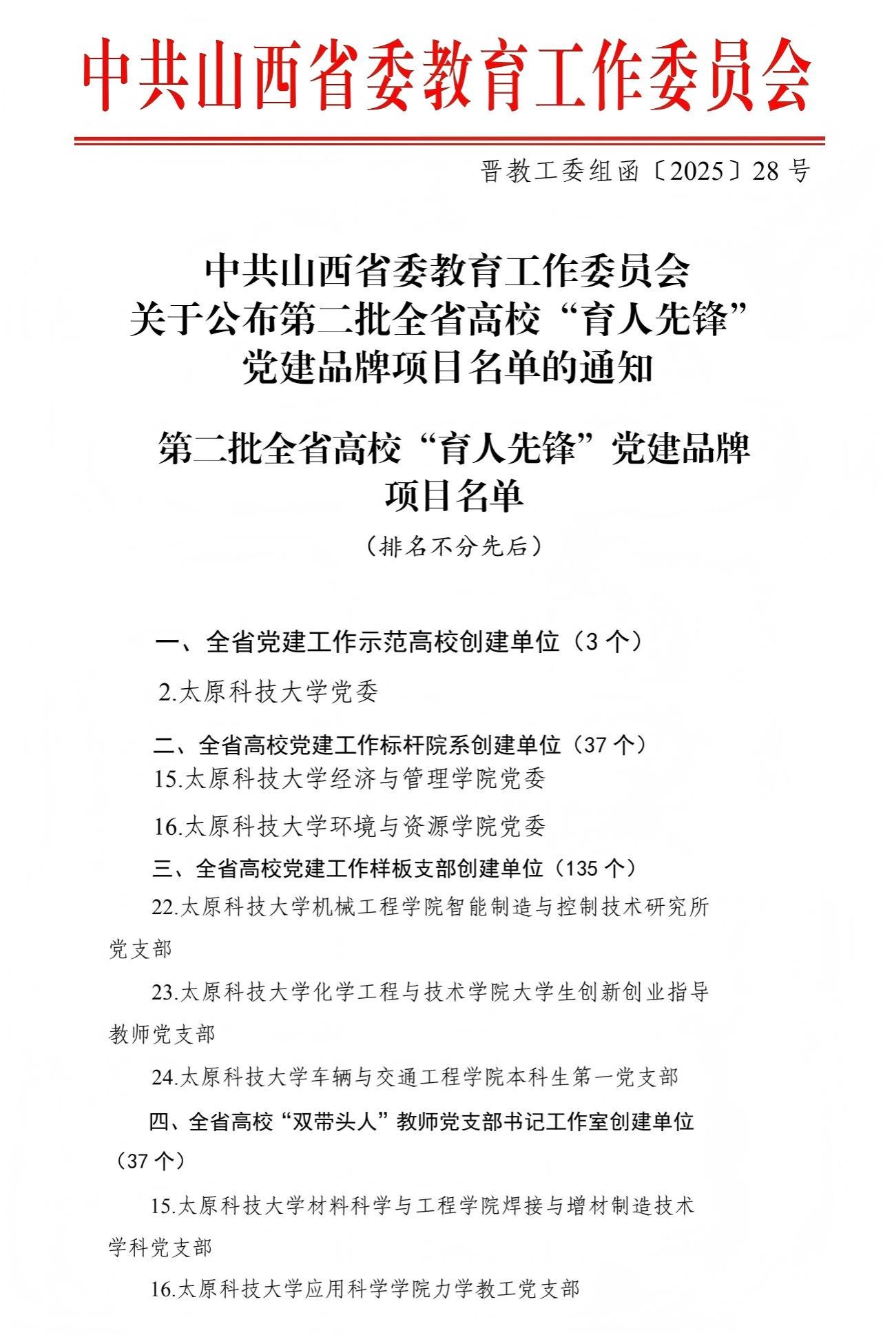 近日,省委教育工委公布全省高校第二批“育人先锋”党建品牌创建单位名单,best365官网党委入选全省党建示范高校创建单位,2个学院党委入选全省党建标杆院系创建单位,3个党支部入选全省党建样板支部创建单位,2个党支部入选“双带头人”党支部书记工作室创建单位。