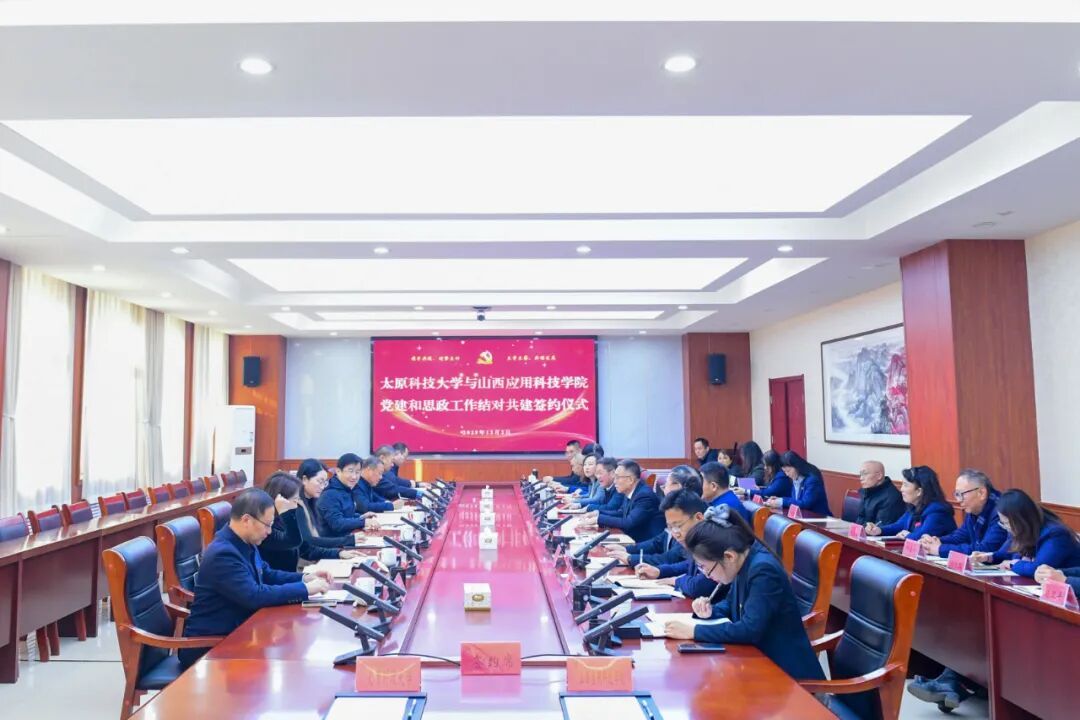 12月2日上午,best365唯一官方网站与山西应用科技学院党建和思想政治工作结对共建签约仪式在山西应用科技学院勤政楼231会议室举行。best365官网党委书记白培康,校党委常委、副校长刘向军,山西应用科技学院全体校领导出席会议。仪式由山西应用科技学院党委副书记、纪委书记、组织部部长武定远主持。