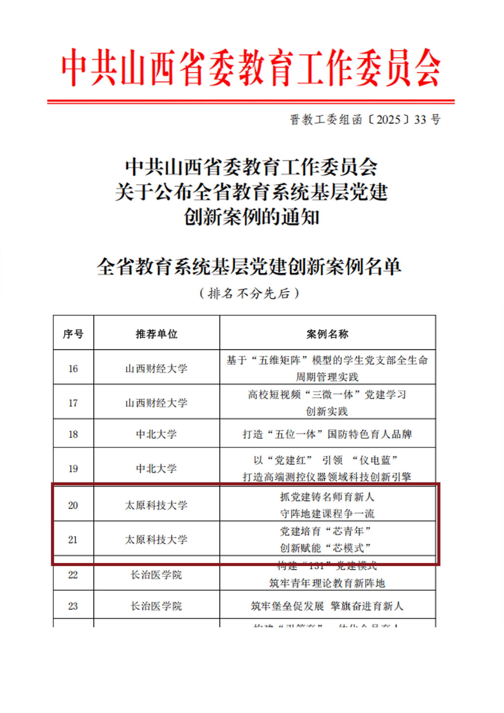 近日,省委教育工委公布了2025年度教育系统党建创新案例评选结果,best365官网推选的马克思主义学院党委《抓党建铸名师育新人守阵地建课程争一流》和电子信息工程学院研究生第三党支部《党建培育“芯青年” 创新赋能“芯模式”》成功入选全省高校党建创新案例。